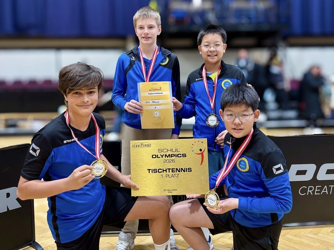 Unser Tischtennisteam krönte sich bei den Schul Olympics Bundesmeisterschaften von 24. bis 26. März in der Wiener Stadthalle zum Bundesmeister und ist damit die beste Schule Österreichs.