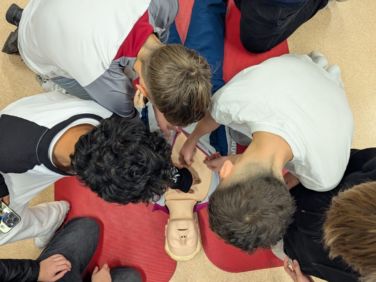 Die Schüler durchliefen vier Stationen, die von erfahrenen Pflegekräften betreut wurden: eine Fragerunde mit ausgebildeten Krankenpflegern, Reanimationstraining, Blutzucker- und Blutdruckmessungen, sowie eine Alterssimulation, die zeigte, wie sich eingeschränkte Beweglichkeit im Alltag anfühlt.