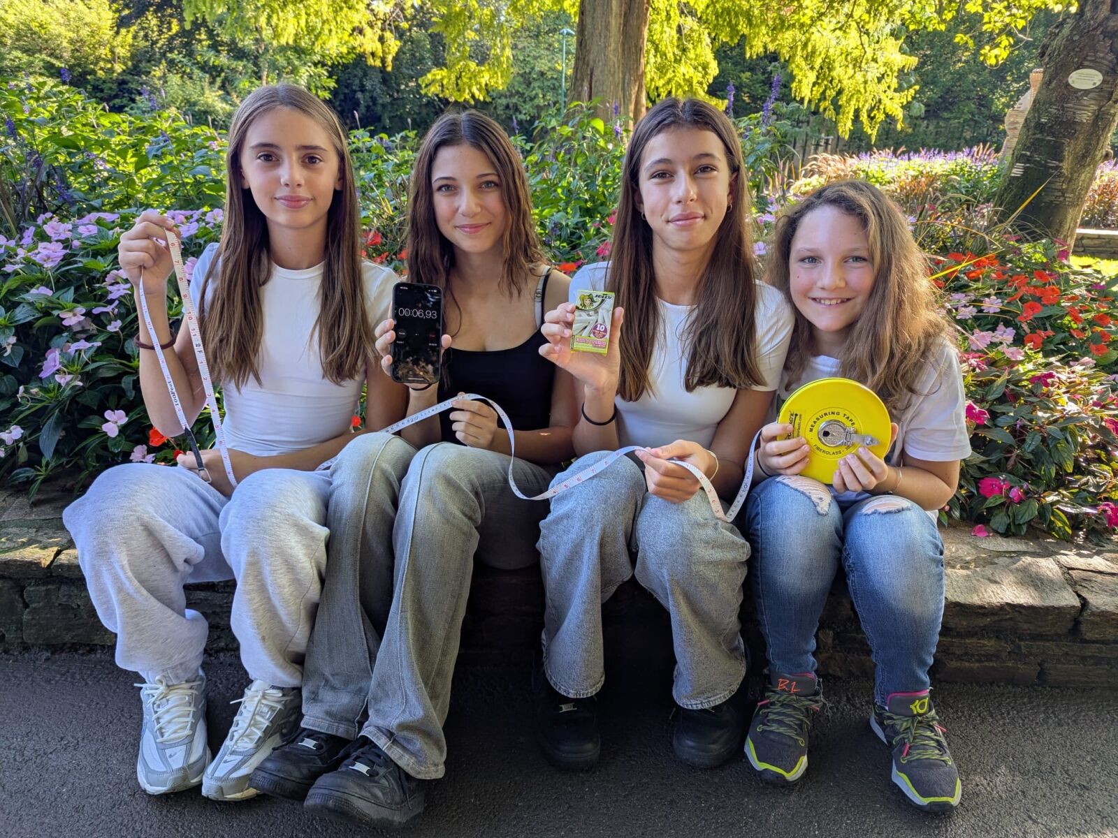 Unsere Schülerinnen und Schüler führten im Park ein spannendes Physik-Experiment durch: Auf einer 10-Meter-Strecke stoppten sie die Zeit von vorbeigehenden Spaziergängern und berechneten deren Geschwindigkeit. Bei herrlichem Sonnenschein, umgeben von viel Grün und blühenden Blumen, hatten die Kinder sichtlich Freude am Lernen im Freien.